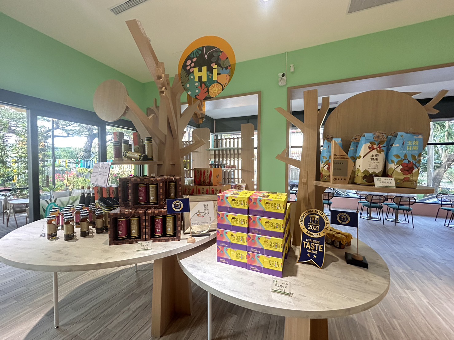 物產館則以鳳梨節理意象亮相,玉荷包樹的展台,大勢宣告鳳荔當家的主場,但是,保留舒適休閒的綠蔭座椅區,則是款待客人的熱情,在空間配比上表露無疑。
