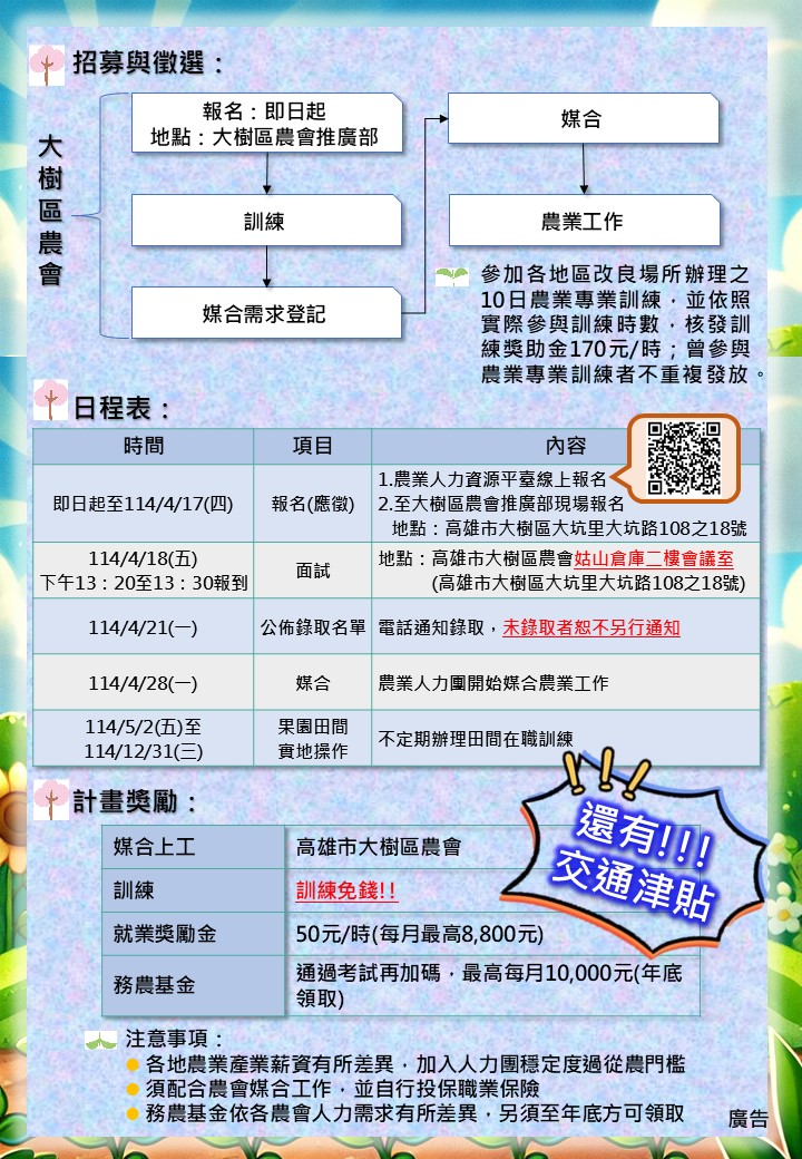📱聯絡電話:(07)656-5101轉134 黃先生、謝小姐